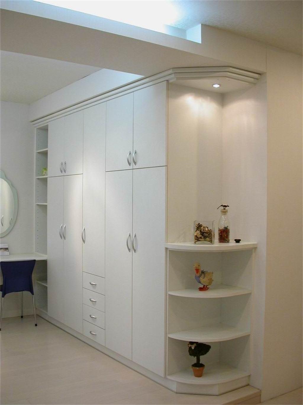 暖白色衣柜加上小部分木歌本色展示柜,